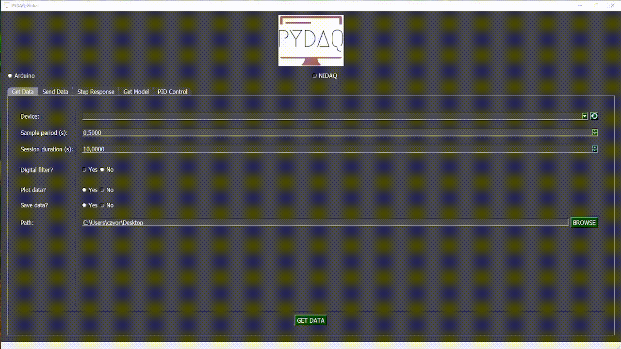 After running the command, the GUI will appear. Navigate to the "PID Control" screen, where you can define the parameters and start the control session.