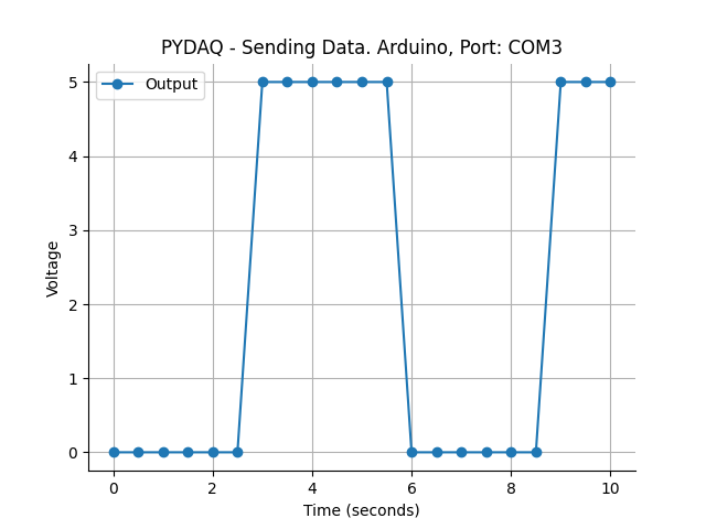 NOTE 2: To acquire/send data with arduino, the code provided here (located at arduino_code) should be uploaded in Arduino first. Default output port is 13 and this port can be changed in the above mentioned code. This code only works with digital output, since this is a limitation of Arduino Boards.